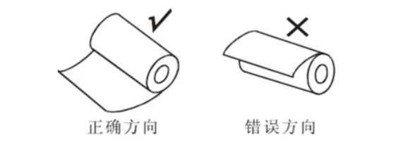 ②按照图标方向安装纸卷,注意纸的方向